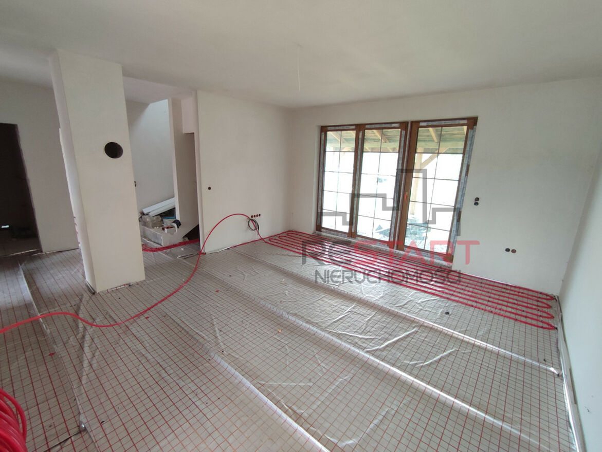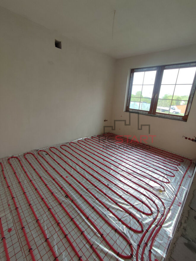 ⦁ podłogi ocieplone styropianem, ogrzewanie podłogowe na parterze (częściowo wykonane)