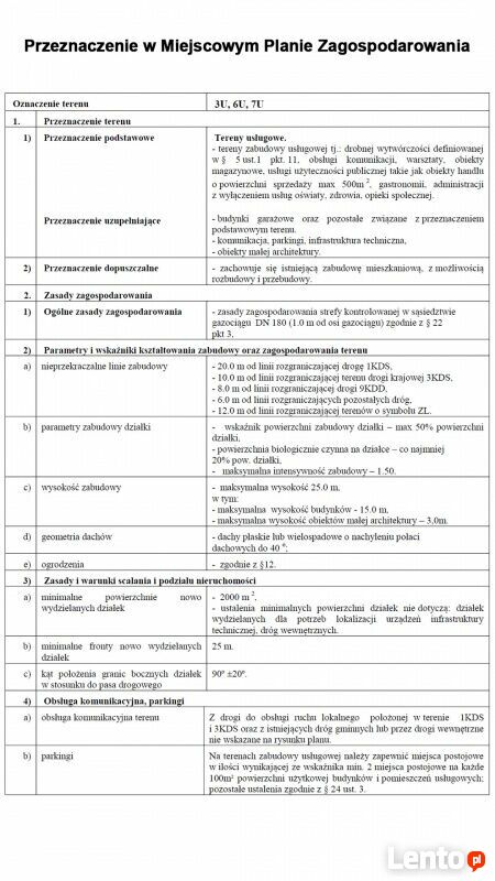 Przeznaczenie w MPZP: 3U – zabudowa usługowa